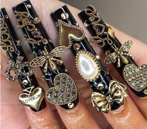 Bold chunky extra long nails that are handmade have so many fun details and textures that make each set different. They’re great for trying out colors and designs you wouldn’t usually wear on shorter nails. Take your time applying them and you’ll have a set that feels unique and ready to show off.