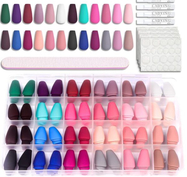 For those who are shopping for a short coffin nail collection, this tip set might be exactly what you are looking for. With a ton of matte solid colors to choose from you can make a manicure that is totally you. What I love about sets like these is that you can add designs onto them if you want then more fancy.