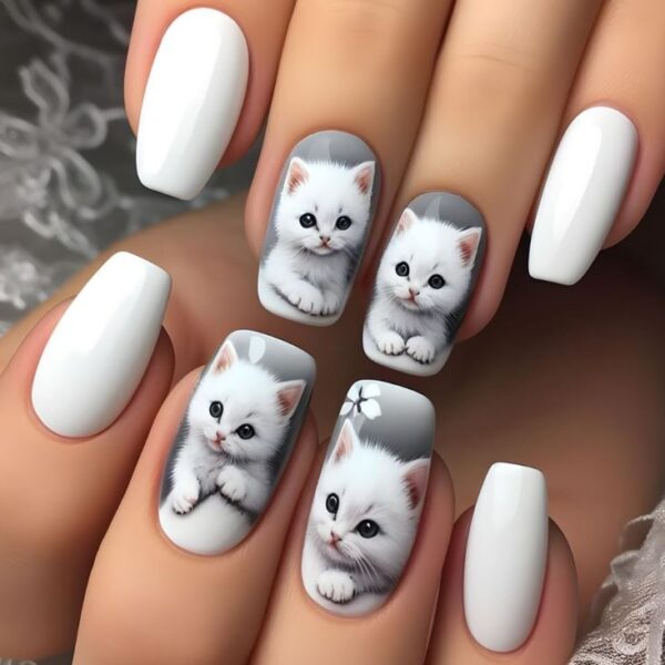 Cute kitten press on nails are so fun for anyone who loves playful nail art. They often come with little paw prints or tiny cat faces that make each nail feel unique. These are great for adding a touch of whimsy to your manicure without spending hours painting the designs yourself.